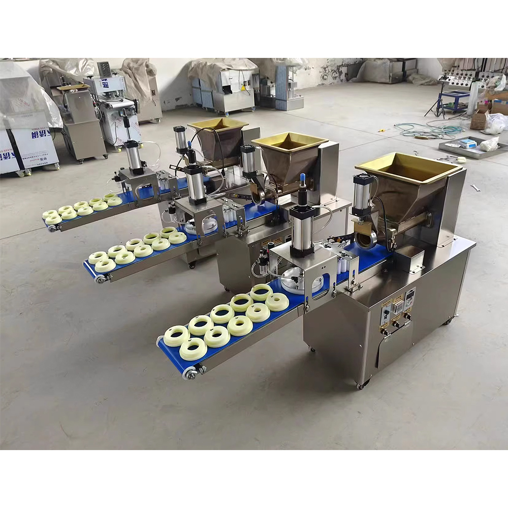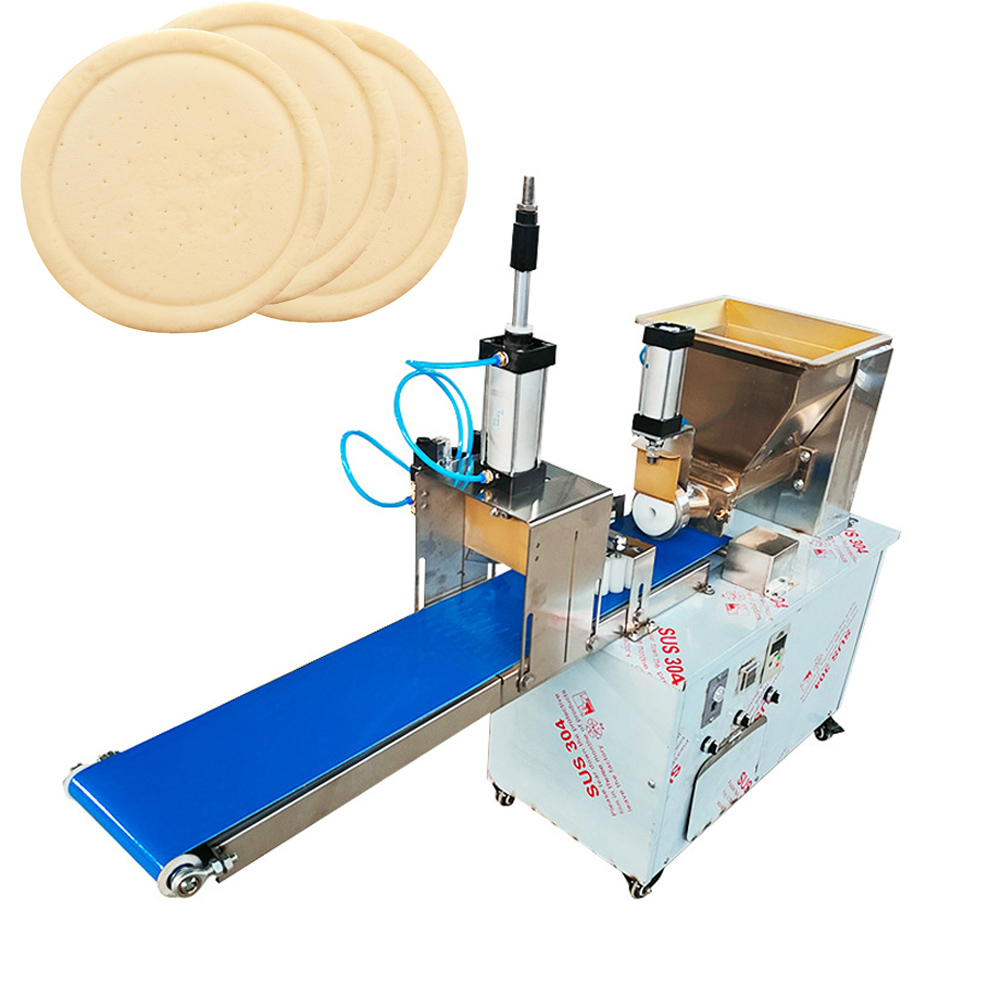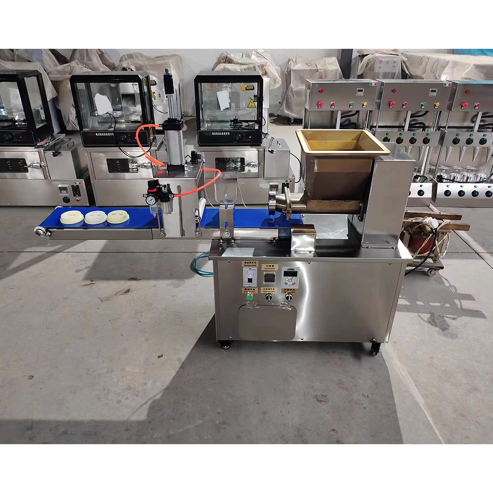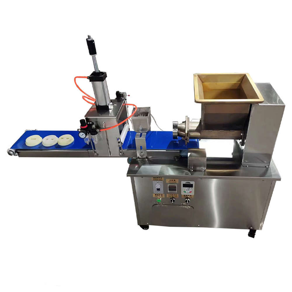 This machine squeezes, conveys, and processes the dough into dough pieces and strips. The length is adjustable, and the mold can be customized in various shapes. The cutter can also be customized to make a cake, so that the dough can be arranged into a cake shape, and can be used to make pizza, moon cakes, Arabic flatbreads, cornmeal cakes, chapati and other foods.